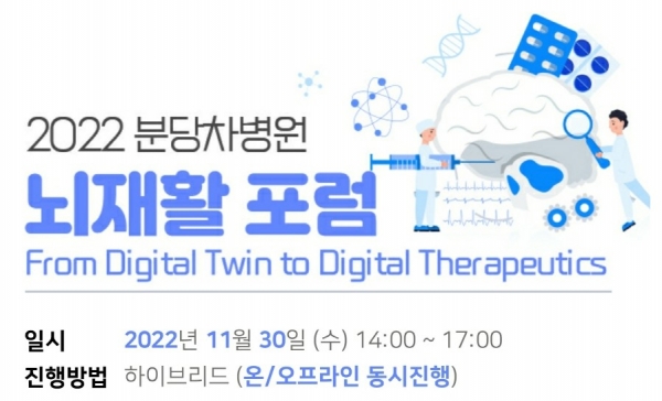 분당차병원 재활의학과와 차미래의학연구원 디지털혁신의료센터는 오는 30일 차바이오컴플렉스 지하 1층 대강당에서 '2022 분당차병원 뇌재활 포럼'을 개최한다.
