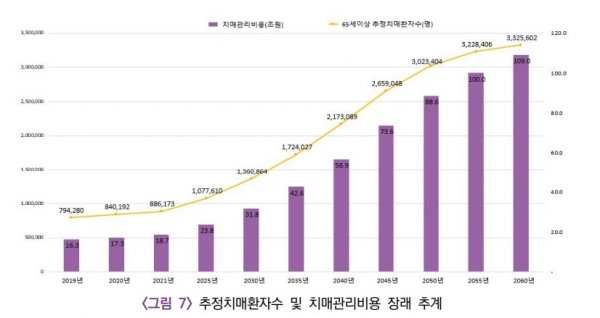 국내 치매환자 연간 관리비용도 이미 심각한 수준에 도달했다. 무려 19조원에 육박하는 수치다.