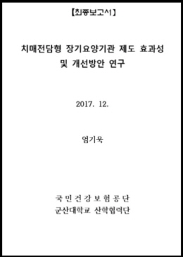 '치매전담형 장기요양기관제도 효과성 및 제도 개선 방안' 연구보고서