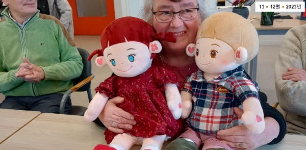 그 일이 있고 한국에서 효돌 보급이 급증해 3천 대 넘게 전달되다 보니 효돌이 독거노인뿐만 아니라 치매 환자를 돌보는 보건소, 치매안심센터, 경기도재활공학서비스연구지원센터 등에서 치매 가족에게 보급되기 시작했어요. 청력이 살아 있는 인지지원등급 환자들에게 주로 전달됐죠. 점점 치매 쪽 케이스가 쌓이면서 치매 환자와 보호자들의 사랑을 받기 시작했어요. 많은 리포트와 함께 우리 회사가 의뢰하지 않았는데도 효돌의 효과성에 관한 국내외 논문 16건이 나올 만큼요.