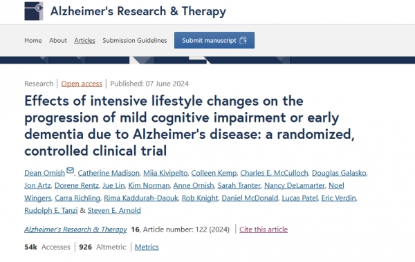 Ornish, D., Madison, C., Kivipelto, M. et al. Effects of intensive lifestyle changes on the progression of mild cognitive impairment or early dementia due to Alzheimer’s disease: a randomized, controlled clinical trial. Alz Res Therapy 16, 122 (2024).