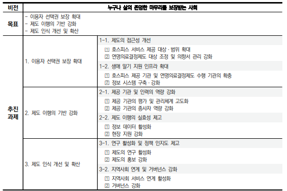 이 중 연명의료와 관련한 추진 과제의 구체적인 방향과 주요 내용을 살펴본다.