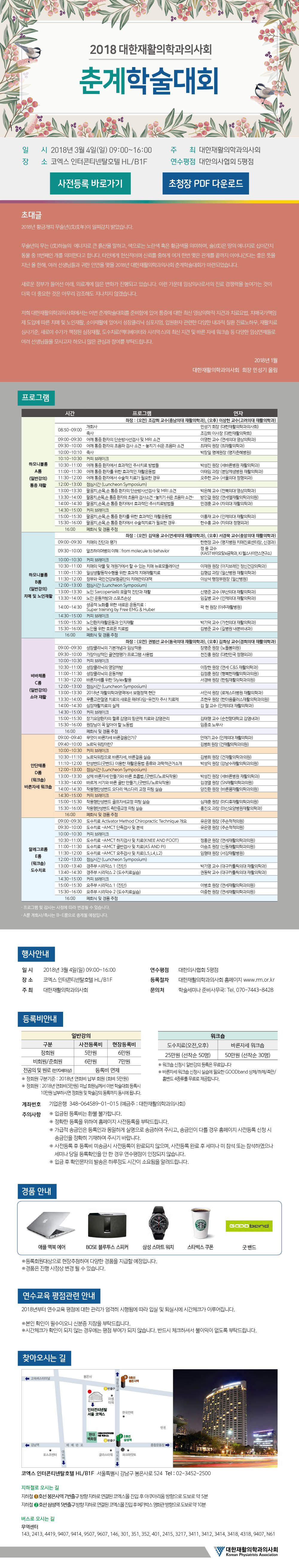 재활의학회 민성기 회장은 "춘계학술대회를 통해 통증에 대한 최신 영상의학적 지견과 치료요법, 치매국가책임제 도입에 따른 치매 및 노인재활 등을 준비했다"며 "최신 지견 및 바른자세 워크숍 등 다양한 임상연제들을 준비했으니 많은 관심과 참여를 부탁한다"고 말했다.