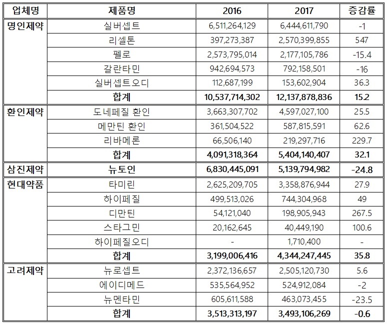 도네페질 성분 제네릭 등 주요 제품 두 자리수 성장 기록
