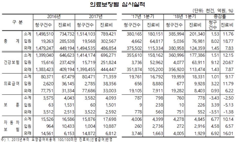 최근 건강보험심사평가원은 2018년 1분기 진료비 통계지표를 공개했다.